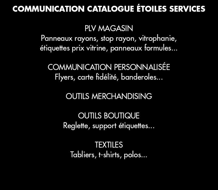 COMMUNICATION ET MARKETING CONSULTER LE CATALOGUE ETOILES CATALOGUE COMMUNICATION SUR MESURE ; REGARDER LE FILM CANAL TV DOCUMENTATION CANAL TV ; COMMUNICATION DIGITALE CONSULTER L'EXEMPLE DU CATALOGUE INTERACTIF